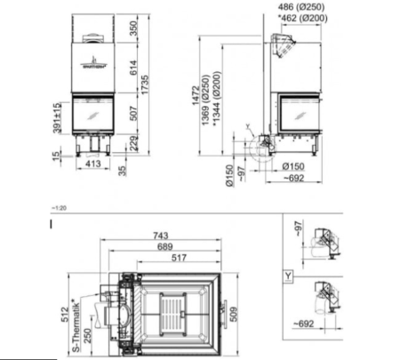Spartherm Kamineinsatz mit einem äußeren Stahlkörper und einem mit Schamotte ausgekleideten Innenraum. Der Einsatz verfügt über eine Glasscheibe mit einem Reinglassystem (Luftschleier). Der Kamin verfügt über eine Luftzufuhr von außen. Garantie: 5 Jahre, verlängerbar auf 10 Jahre als Teil der Spartherm Family. Herkunftsland – Deutschland.